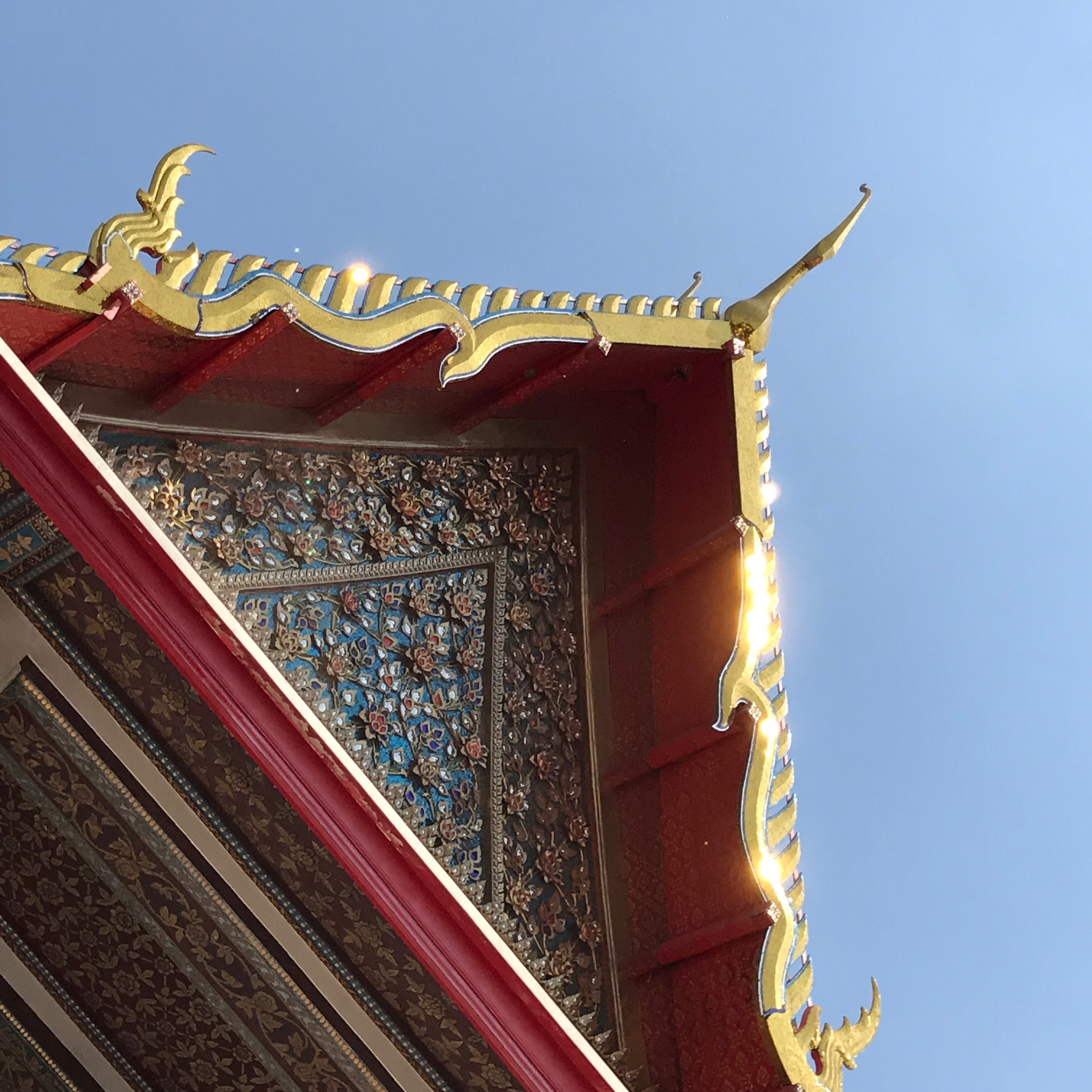 We wanted to see the Wat Pho before we left, so we headed over there. Originally I planned to see the Wat Pho, Grand Palace and Wang Lang Market since they are all close together but that might be a little ambitious. Plus the Grand Palace is not even open for visitors because of the King’s death, so we would only be able to see the exterior and the Wat Phra Kaew. I did a lot of research on proper attire at the temple, so we arrived at Wat Pho at noon, dressed in a t-shirt, clean, unripped jeans, with no hat. I was melting. I then looked around me at people wearing spaghetti strapped short dresses, some in short shorts and others with ripped jeans right where the knee is (the part you were supposed to cover). I do not regret dressing appropriately, out of respect, but I regret coming at noon. We quickly made our way around the temple, admired the grand Reclining Buddha, grabbed the little bottle of free water to cool down somewhat, then decided it was time to go before we got heat exhaustion.