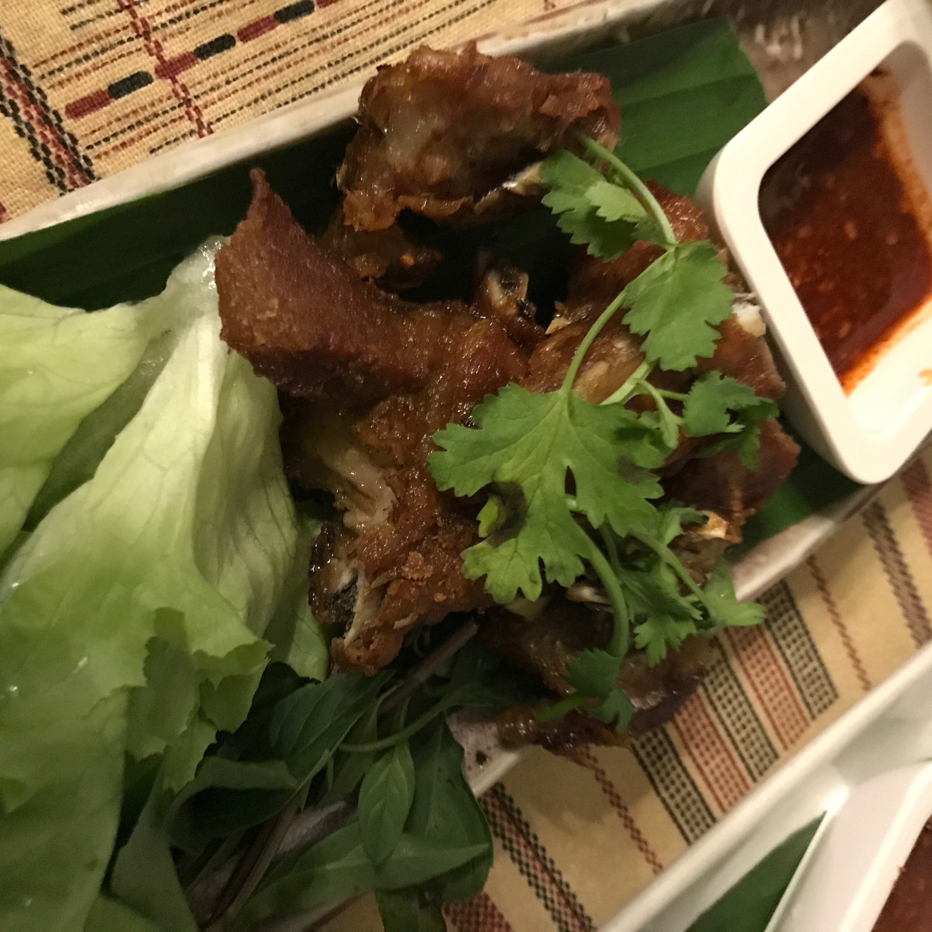 For dinner, we wanted to go to Huen Phen in the old city, as recommended by Mark Wiens. It was a nice sit down restaurant with apparently good local food. When we arrived there was already a long line up but it moved quite quickly. We ordered the Northern Thai sausages, ribs, chicken curry, and young jackfruit salad. Overall, I was underwhelmed with the food here. The sausages felt dry (but maybe that’s a thing here since it was the same with the sausages I had the other day with my curry in Bangkok), the ribs were unremarkable, the curry was actually a watery soup (we even confirmed with our server and he said it is the curry) and the young jackfruit salad was tasty but not memorable. We originally planned to watch a movie but it was getting late and I wasn’t feeling too well, so that brings us to the end of our first day in Chiang Mai.