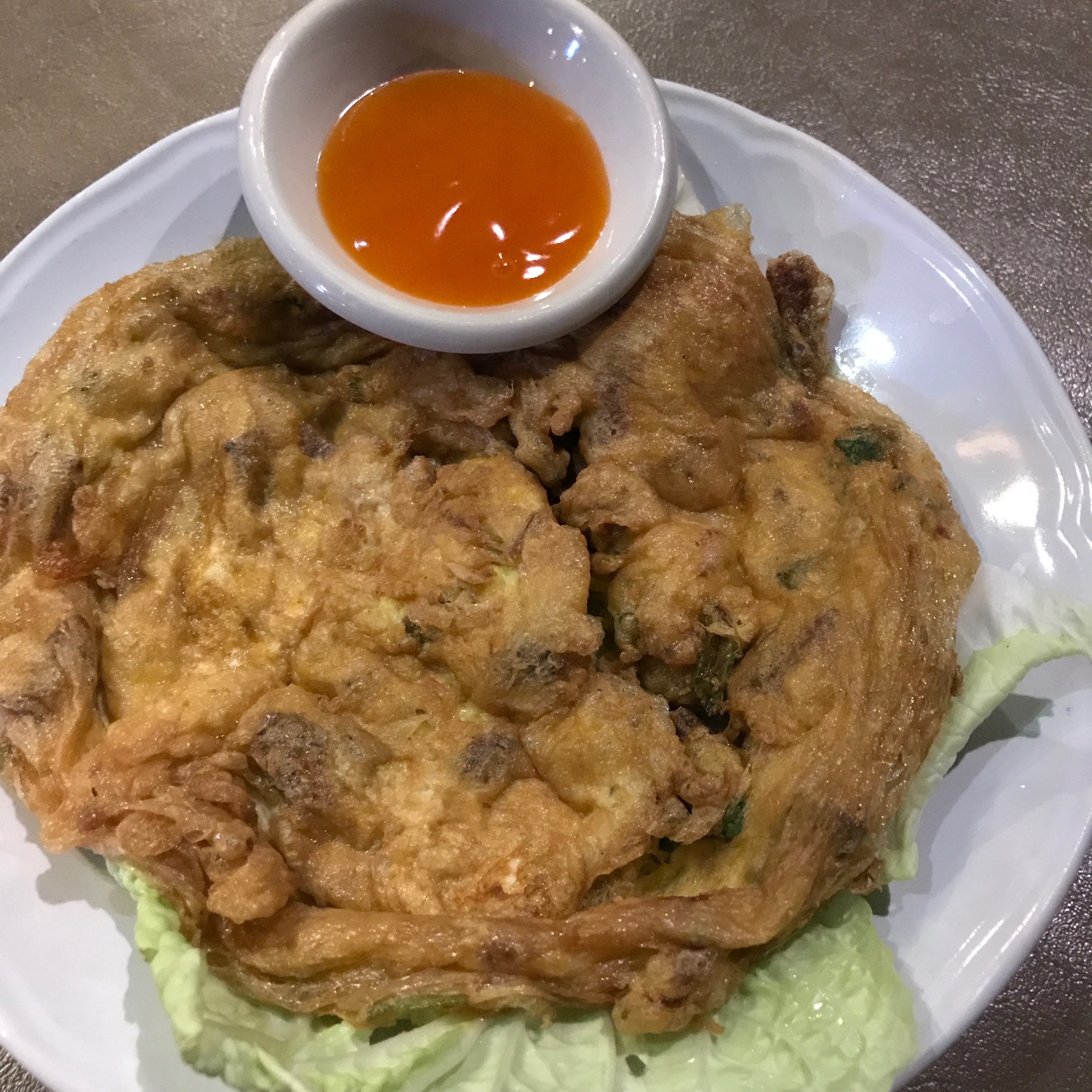 We got home and rested for a bit before heading out for dinner. I am loving the location of our condo because the restaurant was only another 7 minutes walk away. Tong Tem Toh, was another restaurant recommended by Mark Wiens for its good selection of authentic Northern Thai food. Again, there was a huge line up. I was quite discouraged when I saw we were given the number 86 and they were just at 68. The wait wasn’t that bad though, and we got to order while we were waiting in line, so it wasn’t long before our food arrived once we got a table. First, we had the Burmese-style pork curry. It was very thick and had a strong taste of ginger. It reminded me of the ginger vinegar you would drink, as a Chinese tradition, to celebrate when someone has a baby. I usually do not like the taste of ginger but this was tasty. I was impressed our rice came on time at this restaurant, so we got to enjoy our curry with it. Apparently, in Northern Thailand, it is more customary to eat your food with sticky rice but we still like jasmine rice more. Next, we had the stir-fried egg with sweet leaves. To our surprise, the sweet leaves were actually not sweet, but a bit bitter. It was still a nice, simple dish though. Lastly, was the omelette with Northern Thai sausages, which was actually our favourite. The fluffy egg and the sausages, which was not hard when mixed with the egg, worked so well together. It was definitely a more upscale place, because they had a small side table for them to place our water and beer bottles, so they can refill our glasses for us if needed.