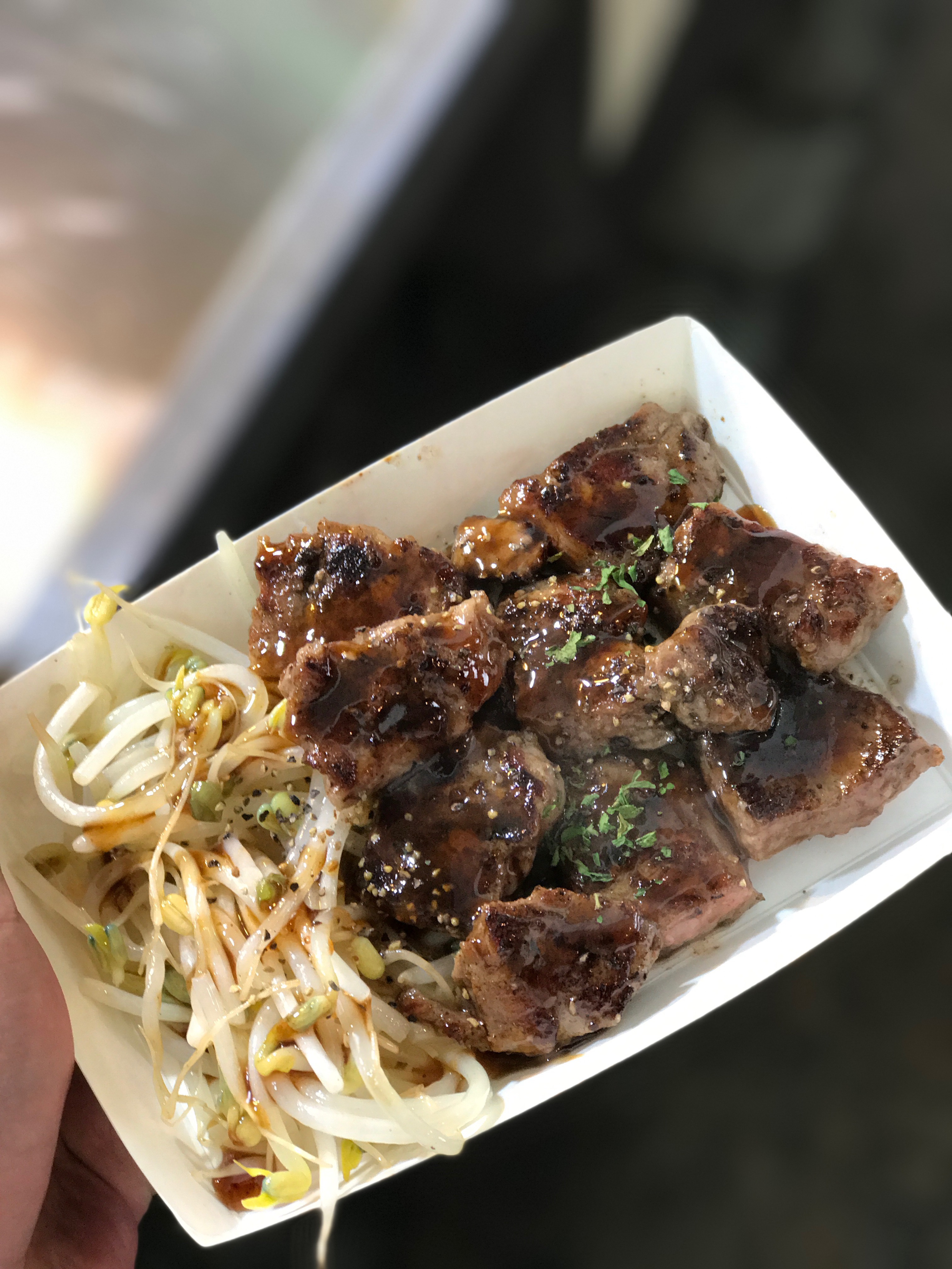 There was a street stall that was selling teriyaki steak, which smelled so good, so we picked up some to fill our tummies for the day. Aaron enjoyed the croissant Taiyaki so much from the other day that we had to grab another one to wrap up the evening.