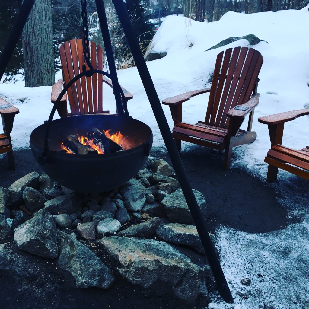 Warm fire-pit outside at the entrance of Spa Nordik. Because photos are prohibited inside the spa, our photos in this post are limited to the outside of the actual spa area.