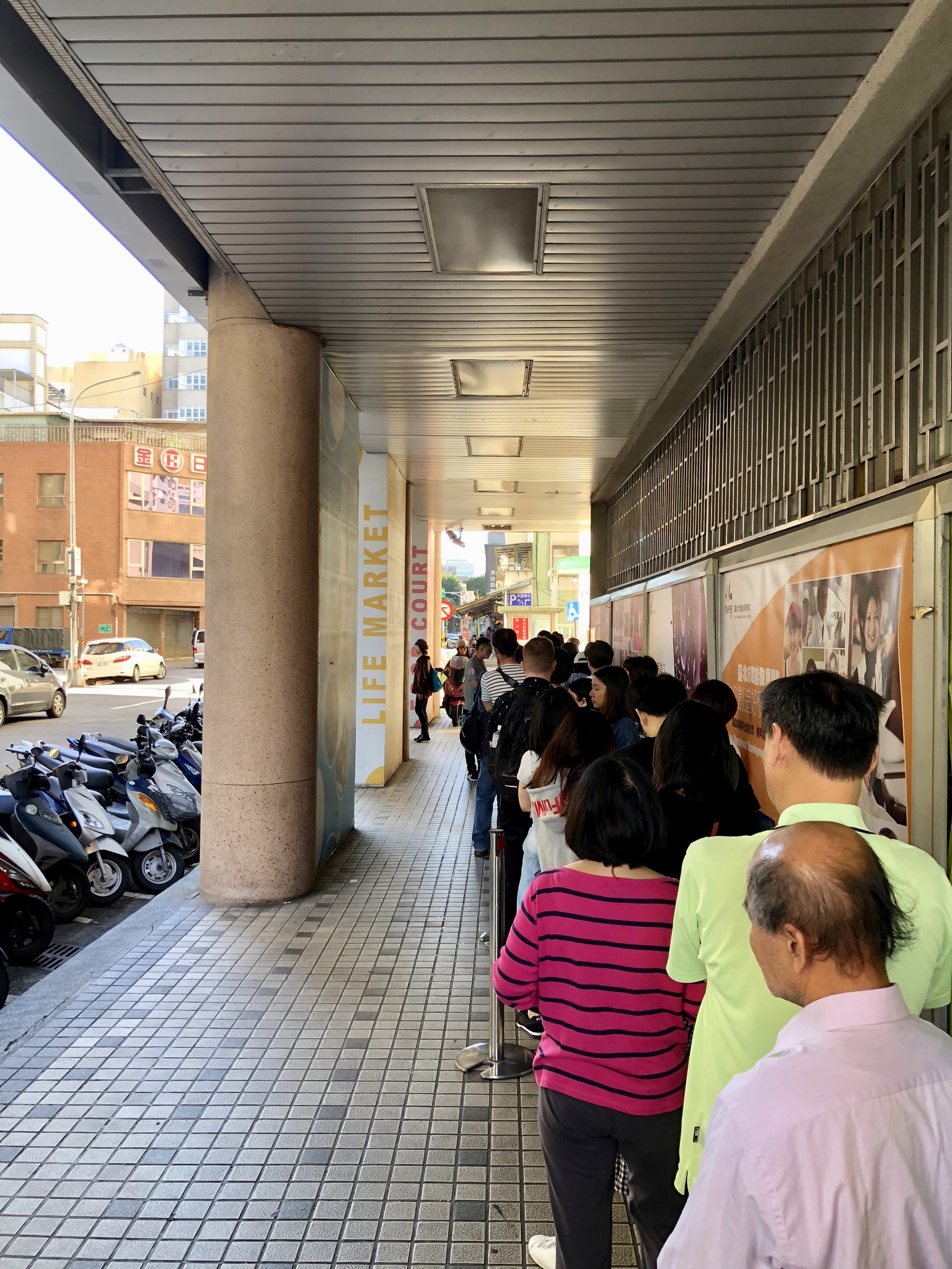 Back of the line of 阜杭豆漿. It turned the corner and then some…