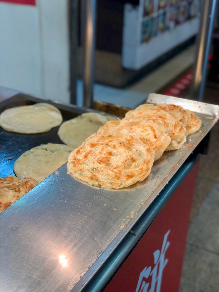 At the train station, we also came across some green onion pancakes that looked and smelled too good to pass up. It was so flaky and reminded me of the delicious roti canai we got in Malaysia.