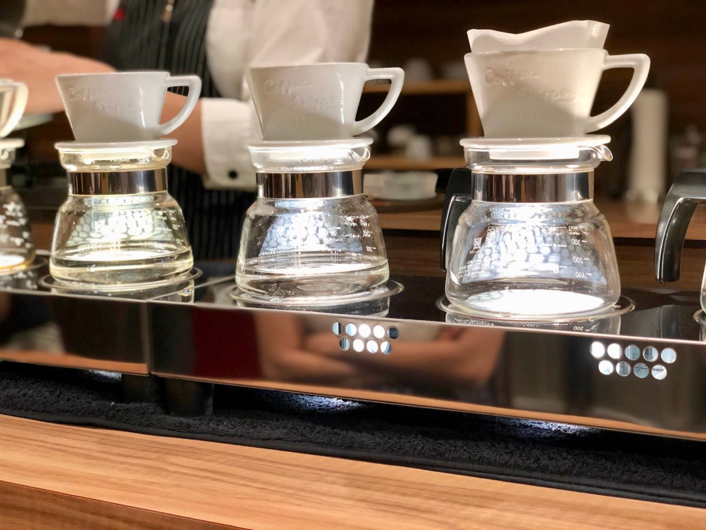 Our feet were getting tired, so we took a coffee break at Tokado Coffee over at the upscale Hakata Riverain to try some of their award winning coffee. It was a pretty intimidating experience for me given I am not a coffee connoisseur, like Aaron. The beans are ground to order. They only had counter seating so you can watch the barista meticulously make the drip coffee in front of you. The whole experience was very therapeutic. I had the lightest coffee bean, which was described as “tea-like” and Aaron had one of their Hakata-exclusive coffee. He enjoyed it so much, he even bought some beans to go.