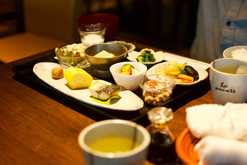 It was day 2 of our road trip and it was raining miserably. Luckily, we don’t have to go very far for breakfast. It was a very nice traditional Japanese breakfast served in the dining room in the lobby of our resort. We appeared to be the only guests at the 9am seating that morning so it was nice to have the dining hall to ourselves. The food was very delicious and I especially enjoyed the fish, which was tender and perfectly seasoned. There were interesting local eats like the umeboshi, which is an acquired taste for some. I also really liked their pickles. Overall, I felt this was a nice, nutritious meal with lots of vegetables, which is something that is always lacking in our diet when travelling. The staff were very attentive and offered to take our photos as I was snapping photos of our food. They also offered us seconds for soup and rice but we were stuffed so we politely declined.