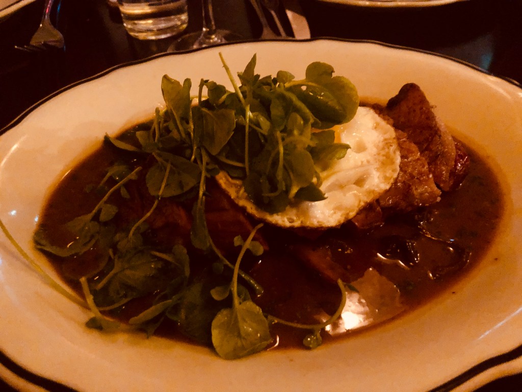 Next, we had the croquettes de canard confit. It was perfect. The light, crispy exterior, with the flavourful duck confit filling was amazing. This was paired with a small pickle on top, which worked very well. This was one of my favourite dishes of the night!