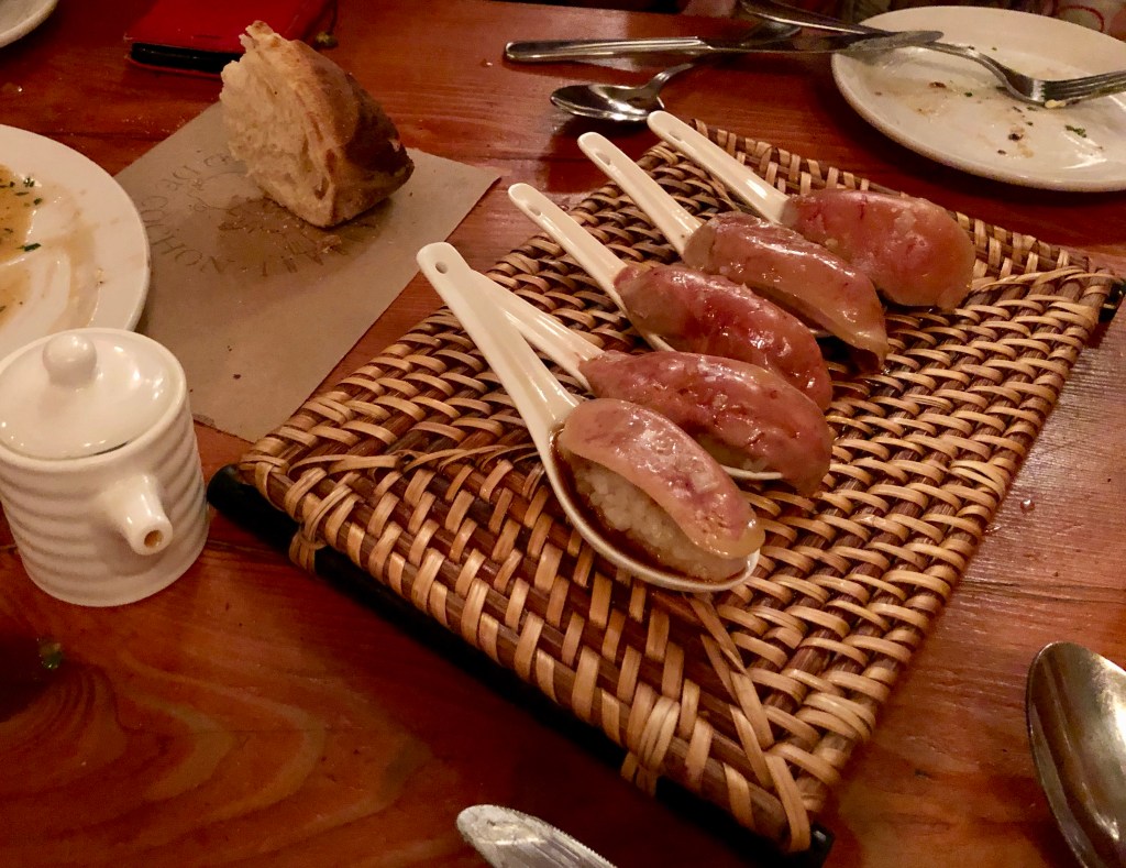 For dinner, we had made reservations at Au Pied de Cochon (PDC), another very popular restaurant in Montreal. We had originally wanted to order some wine for the table but their drink special was too enticing. They were serving gin and tonics sweetened with their own maple syrup and a splash of champagne. It was very tasty and probably the best G&T I’ve ever had.