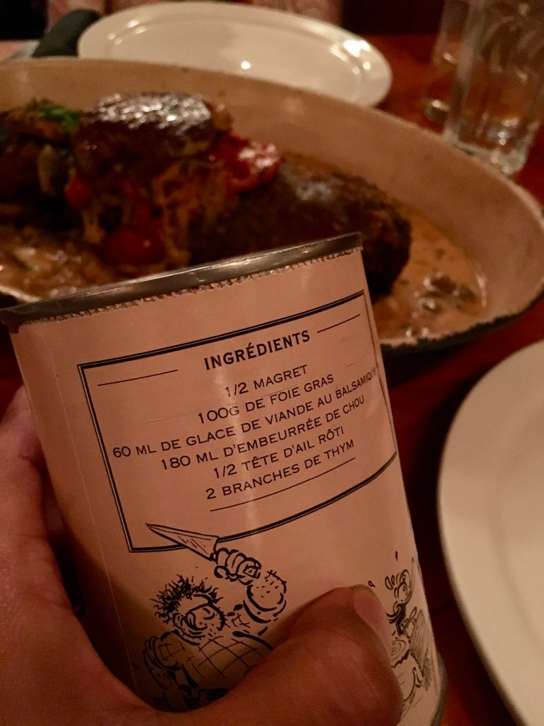 As for our mains, we started with the famous Duck in a Can. Don’t forget the 100g of foie gras. It was literally served from the can. It was nicely made duck but we felt we were probably over doing it on the foie gras by this point.