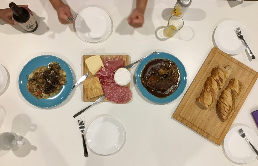 We still haven’t forgotten about our scrumptious leftovers from last night’s dinner. We decided to stop by a small, local grocery store for some cheese, beer, charcuterie and baguette to eat with our pork shoulder and stuffed PDC at home. It was a nice quiet night at our Airbnb with some good food and video games.