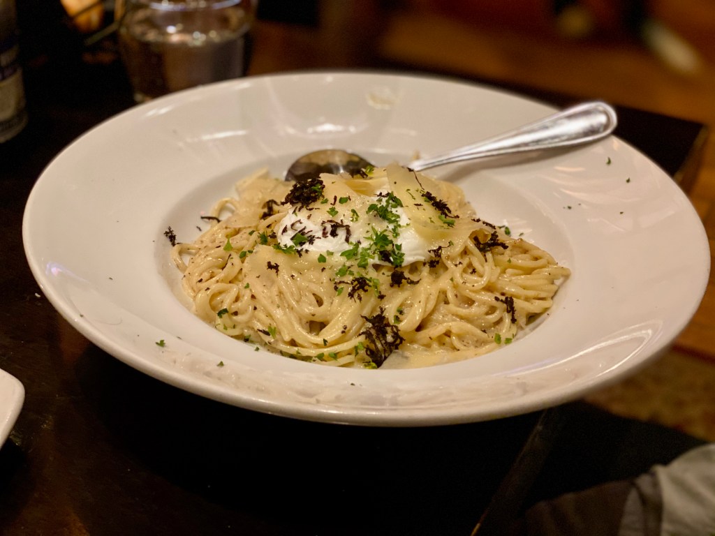 For mains, Aaron and I shared the prime rib and truffle pasta. The prime rib was good, paired nicely with horseradish. I had it with a side of sweet potato fries which came with their special house sauce. The flaky croissant-like bun was amazing. I can definitely eat more of that. The truffle pasta was “absolutely decadent” as it was described on their menu. The spaghetti was served with truffle butter sauce, a poached egg and shaved Parmesan cheese. It was a lovely vegetarian pasta, which I actually enjoyed more than the prime rib dish.