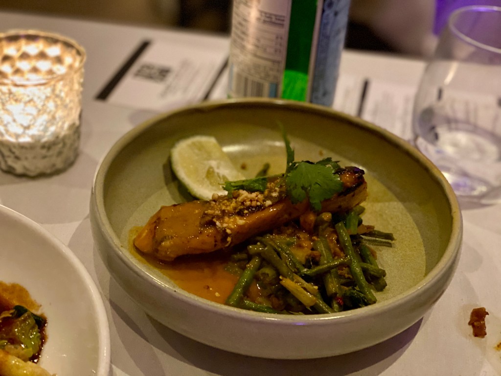 Miso Lacquered Seared Pickerel with Flash Fried Sour Long Bean @ NeXT