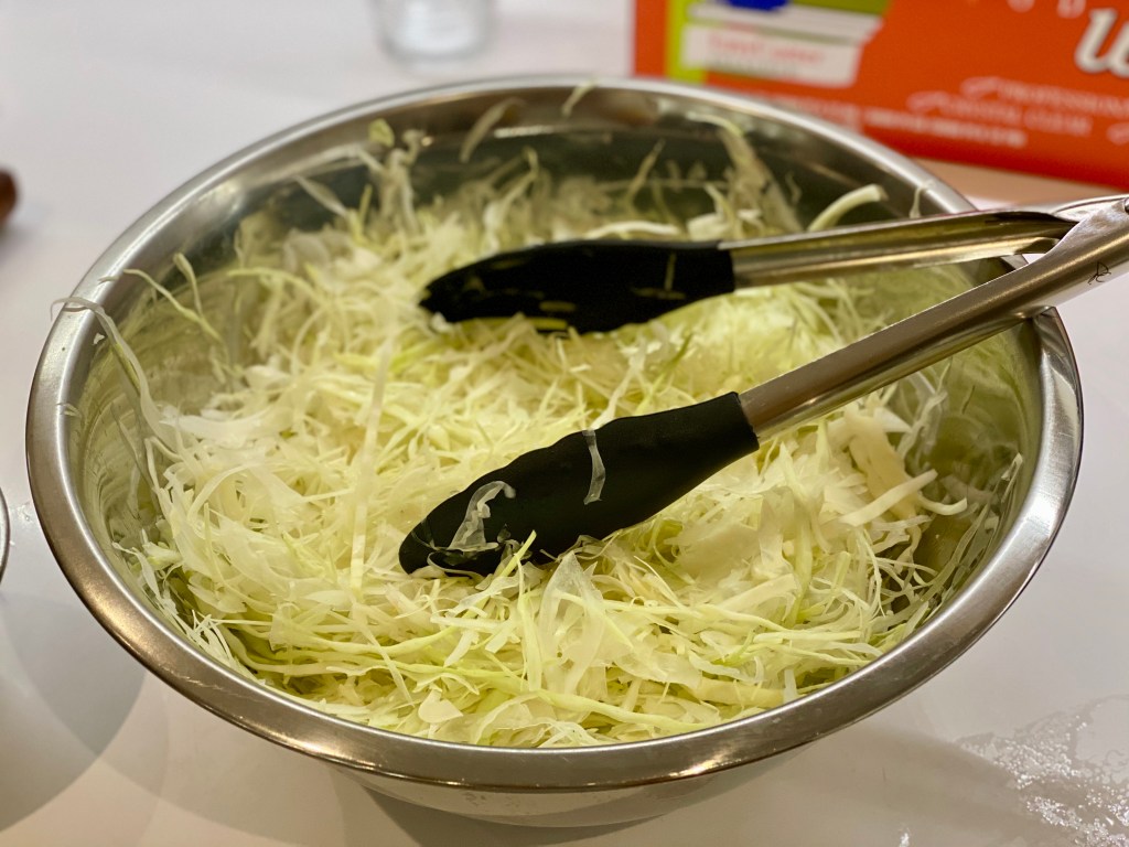 Another great use for the mandolin is for shredding cabbage. I found it did a very good job of creating very fine shreds, much better than I would be able to with a knife. Be careful with making it too fine though as it can be too mushy. You can adjust the thickness using the knobs on the side of the mandolin. You also do need to play around with the orientation of the cabbage a bit to properly slice the vegetable. I think in this case, a wider mandolin may be useful as I had to cut the cabbage to a certain size to comfortably use the mandolin.