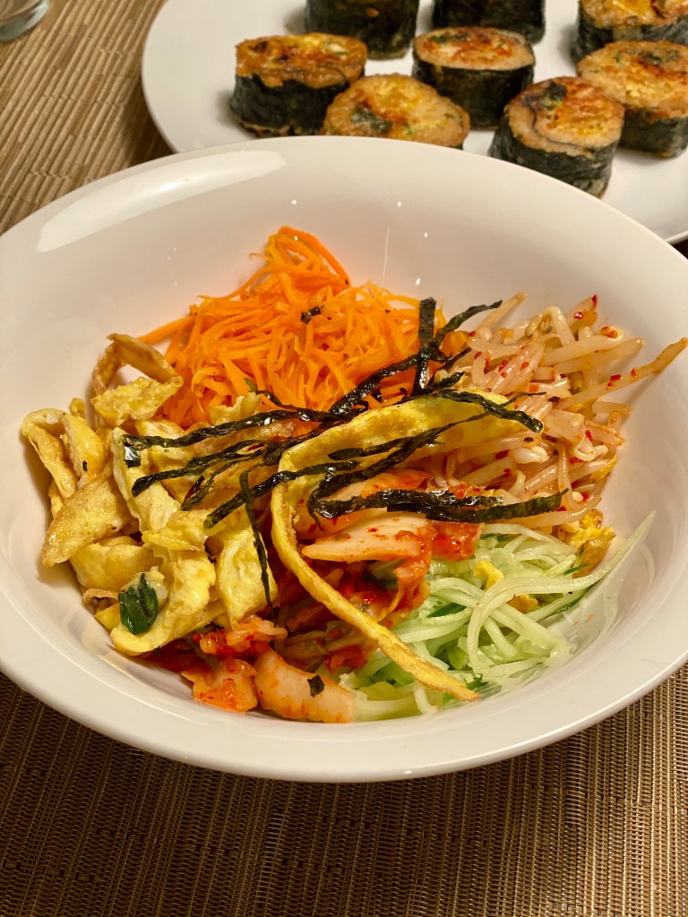 Another dish in which I need julienned carrots and cucumbers is kimbap and bibimbap. These are versatile dishes you can mix and match with various ingredients. You can substitute the meat with a protein substitute like tofu for a plant-based option. There is a bit of prep work to get all the ingredients ready but it well worth it one you roll/assemble these delicious Korean staples.