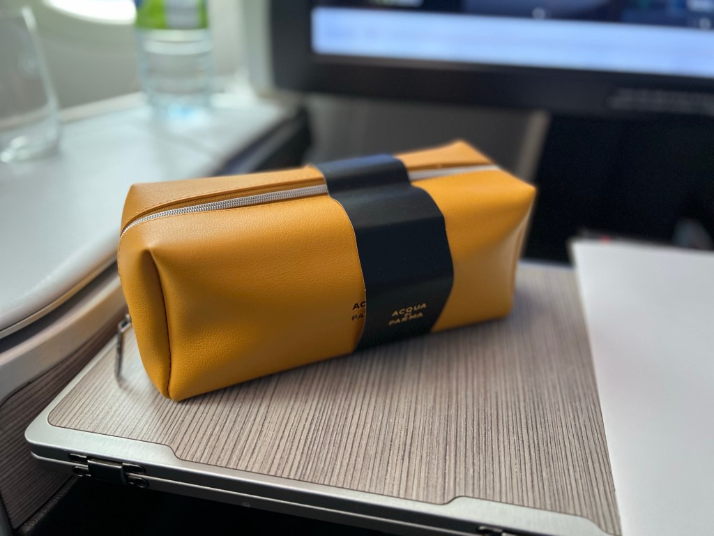 We were actually surprised that we were not given an amenities kit yesterday given this was something that’s given out to when we previously flew Premium Economy but then again, that was an international flight. Today, we got a kit in a nice case with socks, ear plugs, dental kit, lip balm and hand cream included. The hand cream was not the most moisturizing but I appreciated the lip balm.