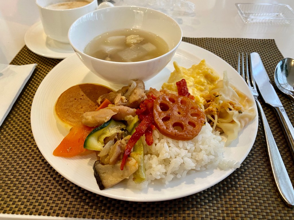 Good morning, Incheon! We are finally on our final leg of this trip – to Kota Kinabalu! I can’t believe it’s been 3 days since we left Ottawa and we’re still “in transit”. We had breakfast at the hotel restaurant. They were very strict with covid practices here and it was mandatory that everyone wear a mask in the restaurant except for when eating. At the buffet stations, they even had plastic gloves for you to wear when handling the serving spoons/tongs. There was a good selection of western foods (eggs, sausages, breast, yogurt bar, salad) as well as Korean food (dumplings, stews, banchan, rice, noodle soup, congee). The pancake however, was very sadly dense and dry and I would not recommend. I tried a bit of everything but enjoyed the beef radish soup, kimchi mandoo, rice with various side dishes (especially the cabbage kimchi and radish kimchi), pork belly and bean sprouts the most. Due to food allergies, the baby wasn’t able to try too much of the buffet, we were able to safely serve her some roasted seaweed and fruits as those had the lowest risk of cross-contamination. We had also given her some instant oatmeal this morning that we had packed.