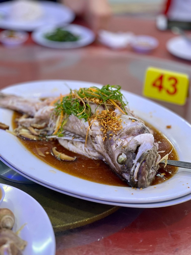 We didn’t fill up too much on food because shortly after, it was dinner time at a nearby Chinese seafood restaurant – Welcome Seafood Restaurant! This restaurant was very large with many indoor and outdoor seating. We had a large table booked in the indoor area which was not too busy. Aaron’s auntie was the host today and treated us to a seafood feast of geoduck, crabs, prawns, grouper, sea snails, Aaron particularly enjoyed the dry butter prawns which is actually topped with fried custard shreds. It was so good, Aaron almost licked the plate. Little baby was even able to try some of the steamed fish here! Aaron paired this mean with Tiger beer and myself with kit chai ping but less sweet this time. It was still too sweet for me so next time, I will get no sugar. I think a beer would have gone better with this meal but I was afraid to go use public washrooms after yesterday’s experience. Eventually, I needed to brave it and it actually wasn’t as bad as I thought. The floor was a bit wet but at least the seats were dry and they even had toilet paper!