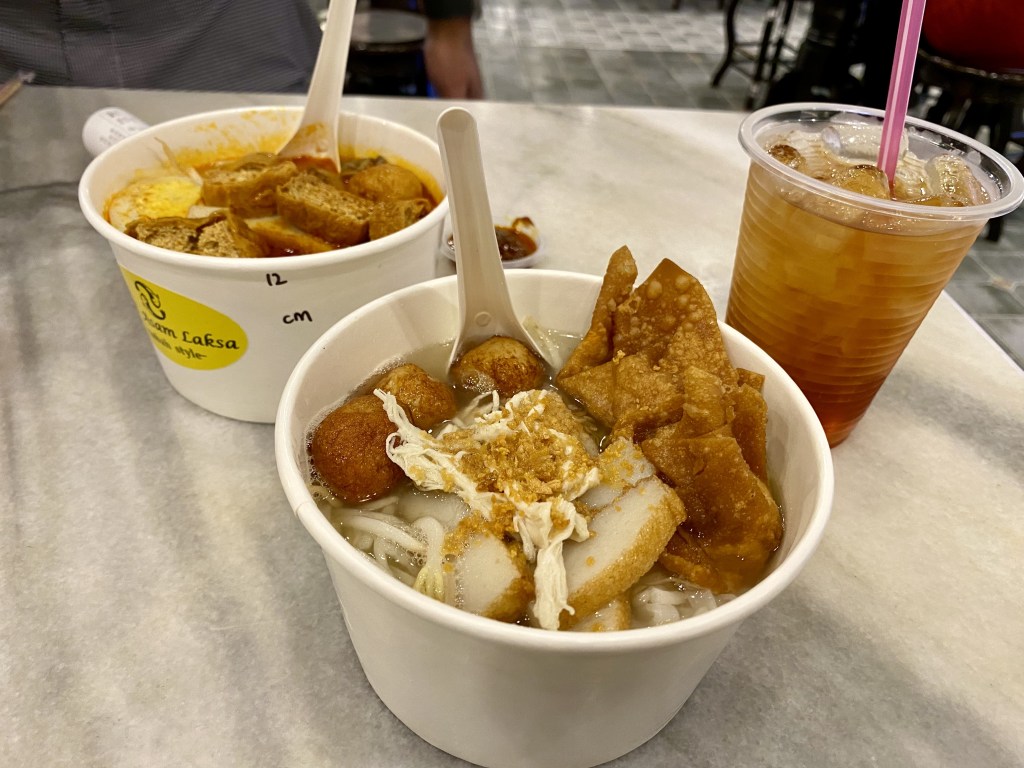For lunch, we wanted a quick meal, so we returned to the hidden upstairs food court at Imago mall and had some noodle soup from DE’ Asam Laksa. However, neither of us wanted the asam laksa. I chose the traditional kuey teow soup and Aaron had the Sabah style curry mee. Mine was a more plain soup base with flat noodles and Aaron was a lot more flavourful with egg noodles. It all depends on what you feel like.