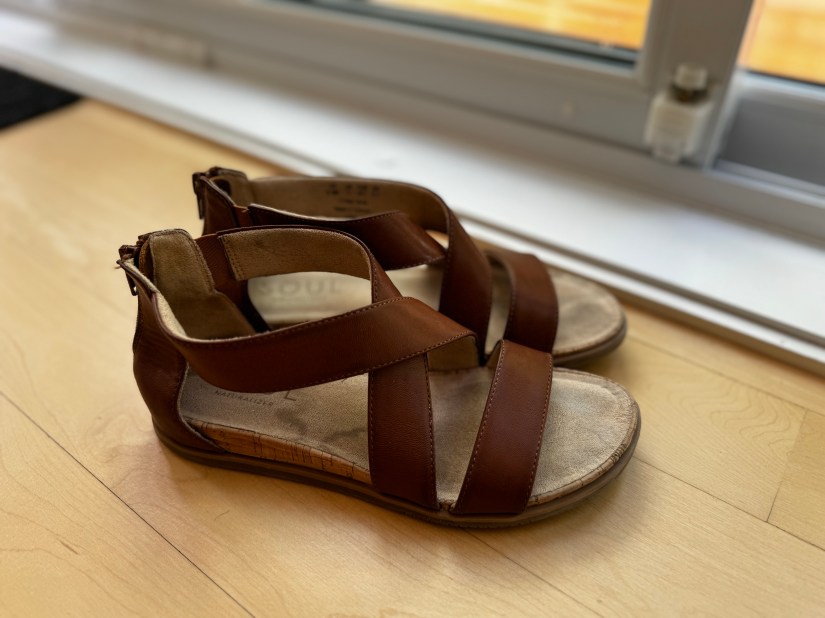 For warm weather travels, I found these super comfortable sandals. It can be dressed up or down and it has good arch support which is a must for lots of walking.