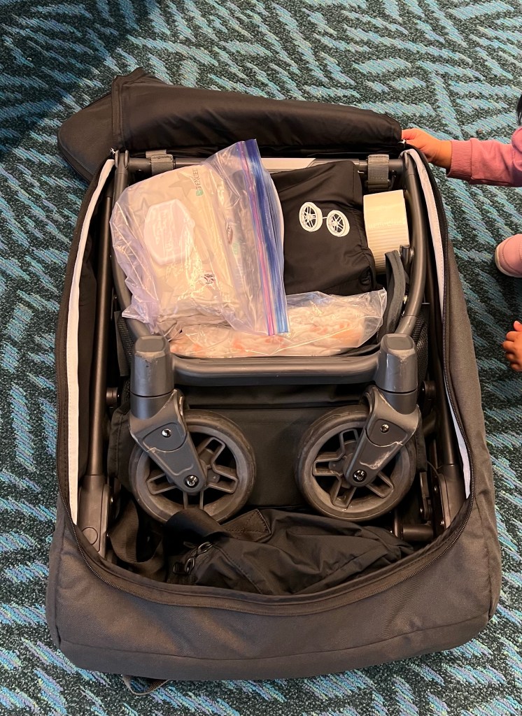 We purchased the Minu stroller bag as soon as we began travelling with our Minu stroller and we have actually been really impressed with it. Not only is it heavy duty and provides good protection (with extra warranty as long as you register the bag) for our stroller when it’s gate checked, it acts as extra storage if needed. We usually store extra wipes and diapers in it. During our last cruise trip, we also stored dirty laundry and extra shoes it in as we were getting on and off the ship since we didn’t actually need to store the stroller in it as we were using it.