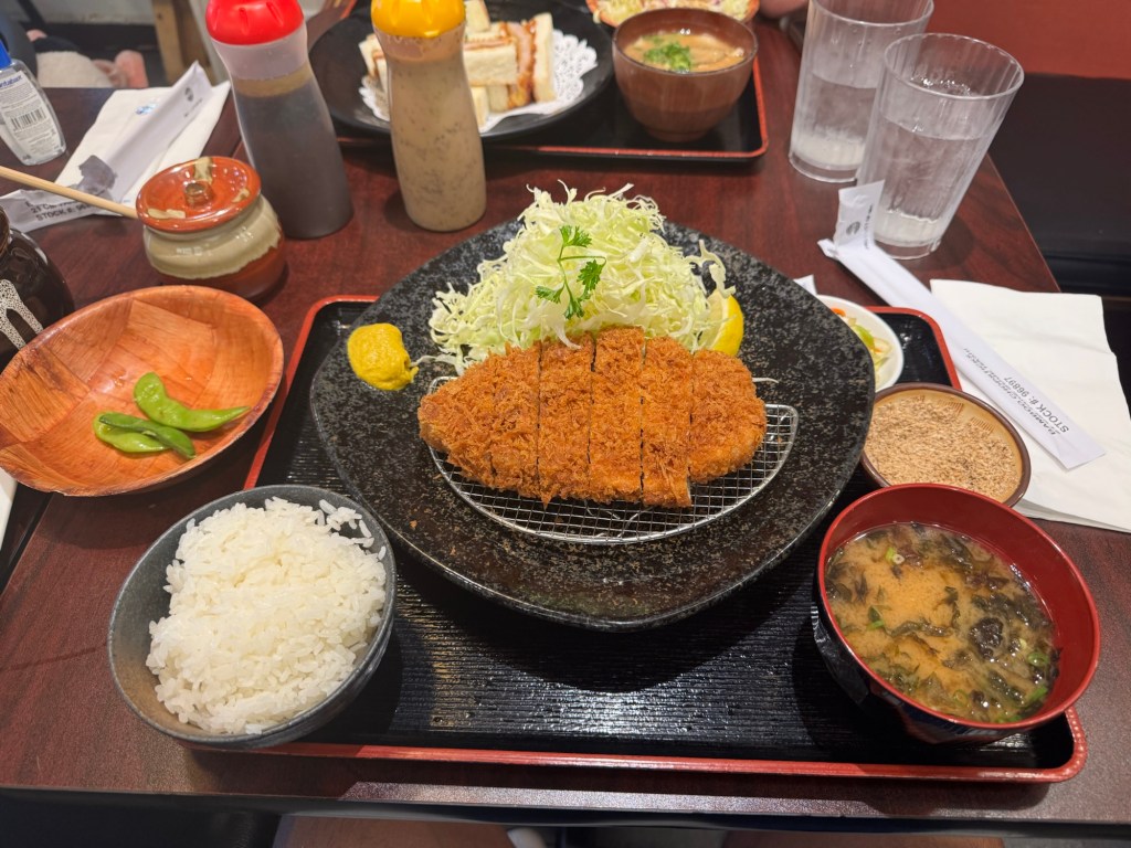 For dinner, we tried our luck at the famous tonkatsu place close to our hotel. Again, we opted for an early dinner and there was no line up. I ordered the tonkatsu sandwich which was pillowy on the outside and crunchy and delicious on inside. I also ordered a side tonjiru (pork soup) which is one of my favourite Japanese soups and it was perfection. Aaron had their specialty Kurobuta pork loin katsu which not quite as good as to the one he had in Tokyo but still better than anything else he’s had in North America. It came with unlimited soup, rice and cabbage, as usual. We enjoyed our dinner as our little one napped and packed some leftovers for her to enjoy back at the cocktail hour at the hotel.