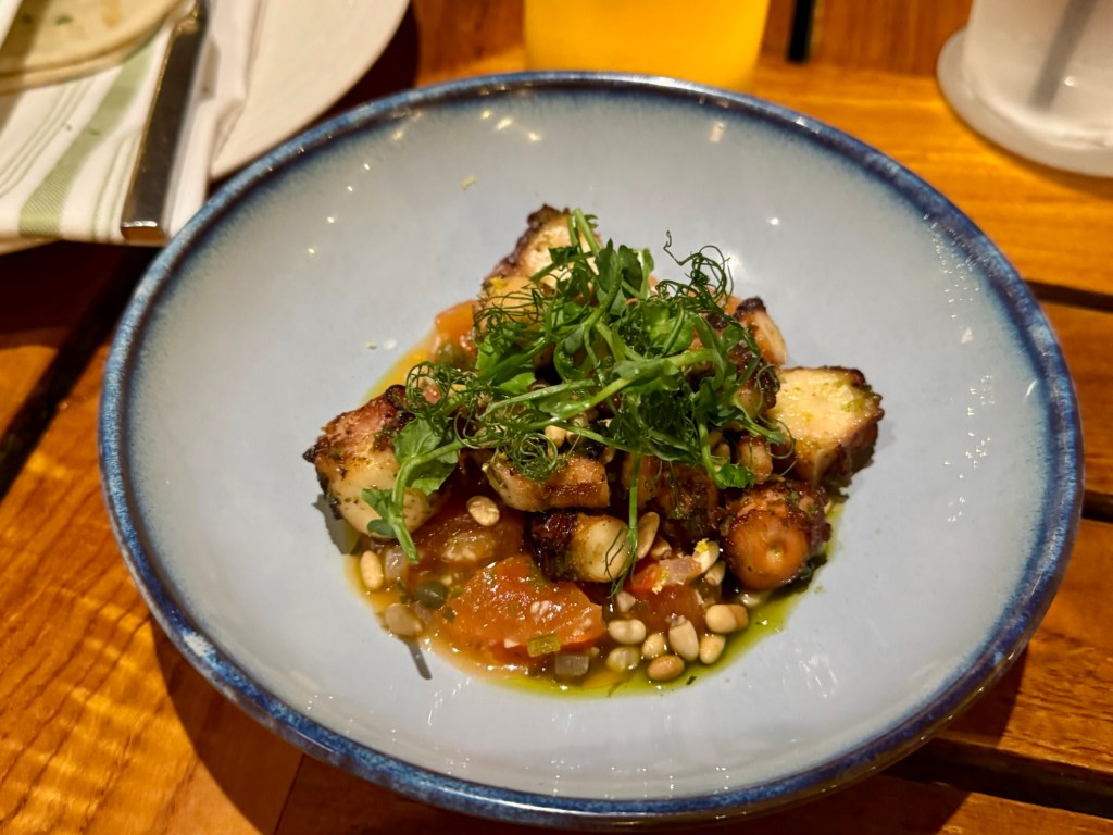 On our way back from Maui, we stayed Aulani resort for a few nights. We ate most of our meals on the resort which we’ve already blogged about but I had to write about our experience at Mina’s Fish House at the Four Seasons next door which was probably our favourite meal of this whole trip. Everything was perfection. Their complimentary hummus and pita was a lovely way to start the meal. I ordered one of their cocktail which was like a South East Asian dessert in cocktail form: it contained a matcha-infused vodka, pandan, coconut, lime and basil leaves. My mind was blown. For dinner we started with their hamachi crudo which was amazing. Aaron was obsessed with the sauce. We also had the broiled Spanish octopus which was perfectly cooked and not chewy at all. Then we had their char-broiled lobster cooked with miso butter, garlic and yuzukosho. We only got the small portion and I wanted more by the end of it. Since it’s a fish house, we had to order a fish. We had one of their fish specials which was grilled then place on top of a kimchi pork belly stew. Our server recommended we paired it with rice to which we had to order the spam fried rice. And wow what an incredible way to round off our meal. Everything was mind-blowingly good. We were left truly speechless.
