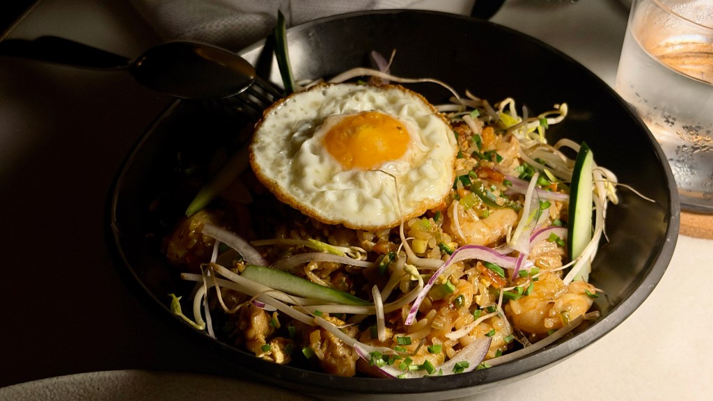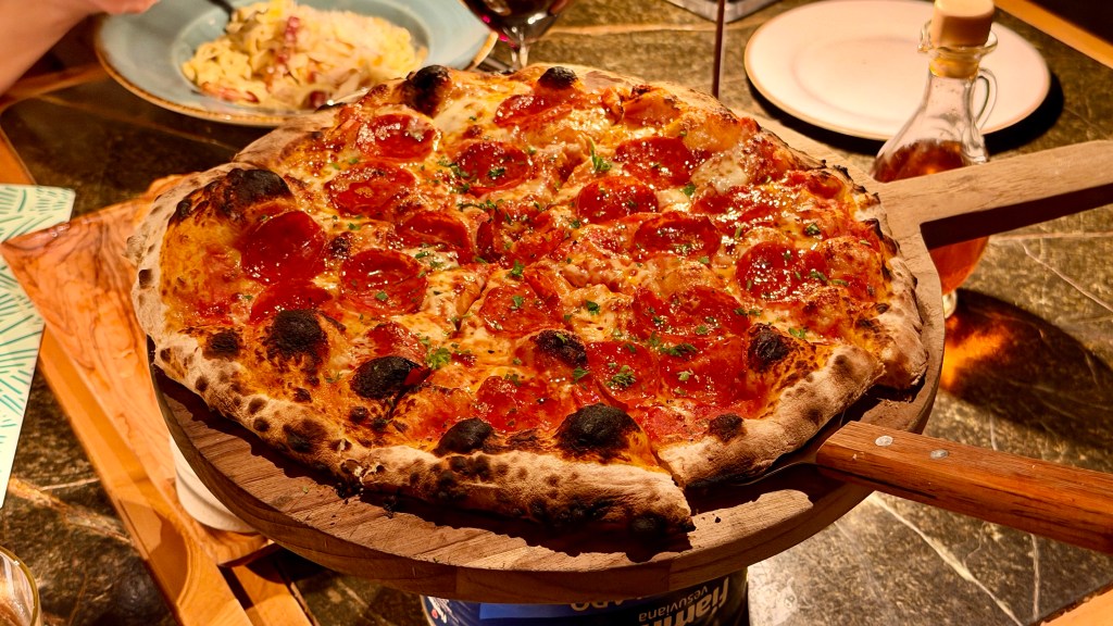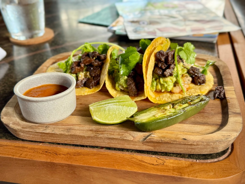 Lunch options were limited – with most of the menu options being similar, whether you enjoyed it at Gaio, by the pool/beach or in your room. Our usual order here was the pizza and steak tacos. We also tried their salads and bowls which were unremarkable. One of the days, we had lunch at Mesa at their beach club. Unfortunately, we were not able to fully enjoy the experience, since it was super windy that day with sand blowing into our food. Of note, all of their dining options are outdoors, with in-room dining as their only indoor option, unless you want to book a private dining experience in one of their event studios.