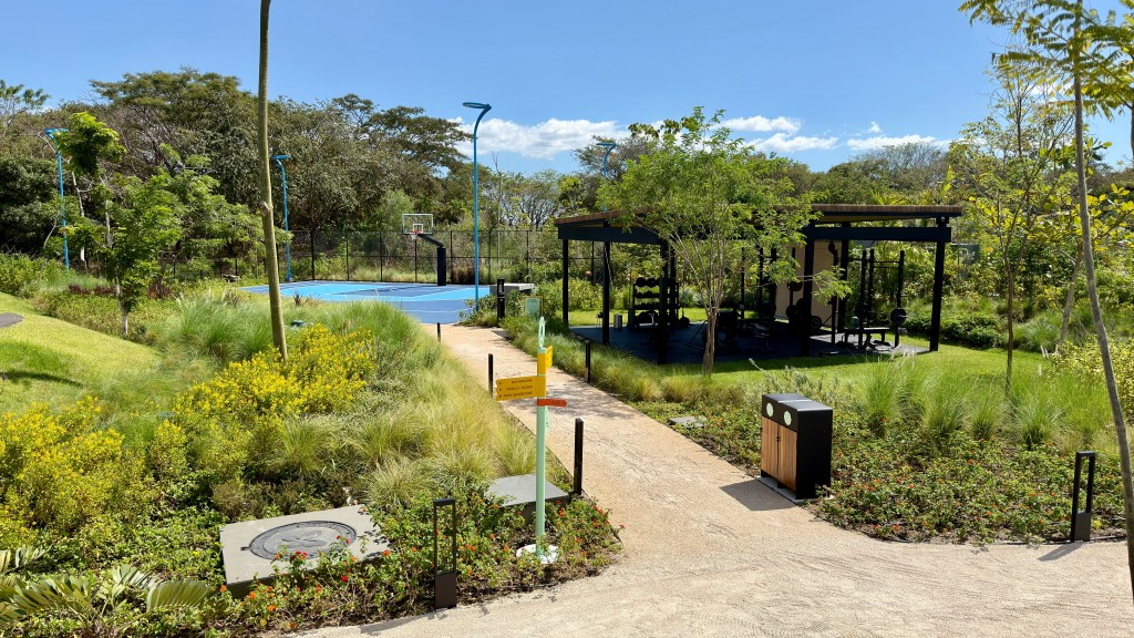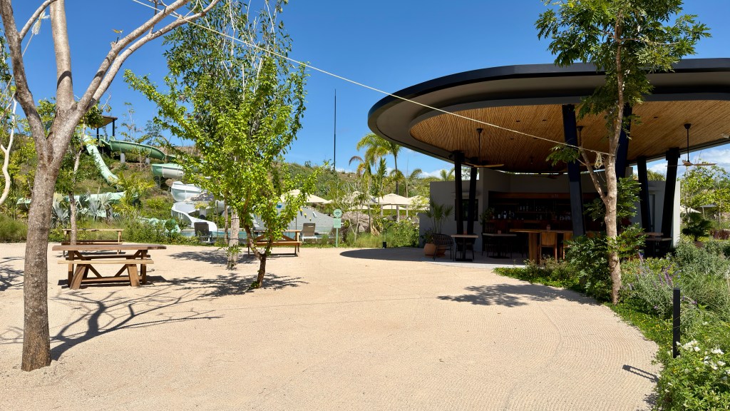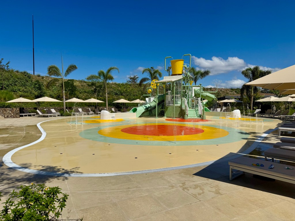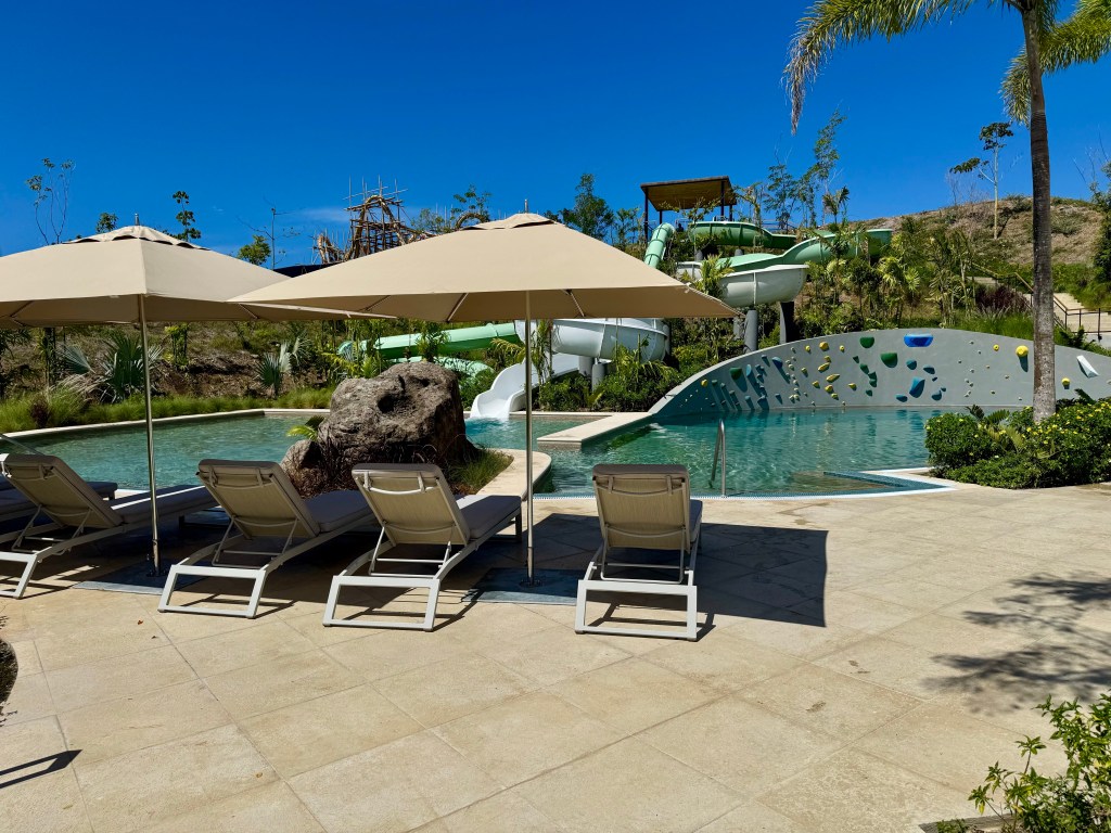 For one of our days, we took the shuttle over to Papagayo Park, which was a new addition to the peninsula with fitness equipment, tennis, basketball and pickleball courts, lap pool, water slides, a splash pad, playground, and pump track. They also had an art studio was classes each day. The facilities were just open one month ago and wasn’t very busy when we visited. Like the rest of our stay, there were towels, sunscreen available. They had a small change room showers, and multiple washrooms on site as well. They were also constructing what looked like a roller coaster.