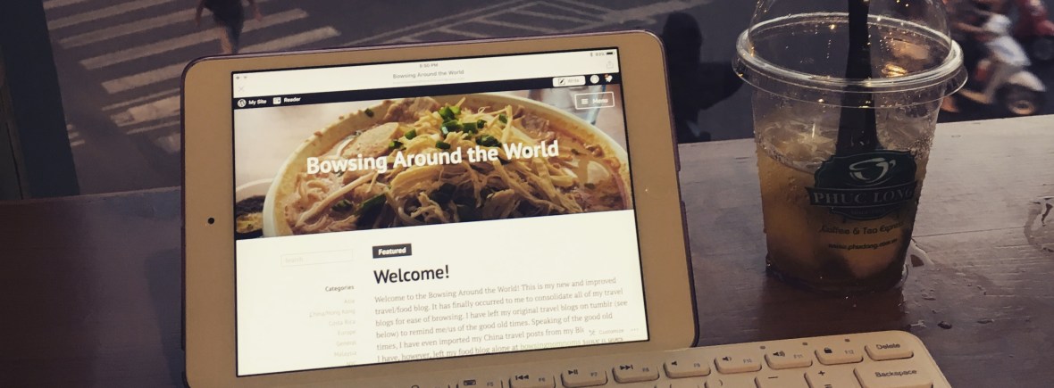 I love traveling. I love food. I love blogging. So why not combine all these interests into a travel/food blog? I already had an amateur personal blog using Blogger dating back to 2007. While I was traveling in China in 2010, I realized I had a lot of idle time during my bus rides between destinations, so I started travel blogging using my phone onto the same blog. It has become a habit since, although I have migrated to Tumblr and now WordPress. It originally started as a travel blog – Bowsing Around the World. In 2013 I’ve also expanded my blog to include food reviews of local restaurants in Ottawa (Canada), as I realized I wanted to continue blogging even when I am not traveling. And that’s the story of the birth of this blog – Bowsing Nom Noms. I’m excited for you to join me on my food adventures!